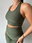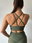 Escote redondo y doble tira de diseño que cruza en su espalda.