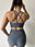 Escote redondo y doble tira de diseño que cruza en su espalda.