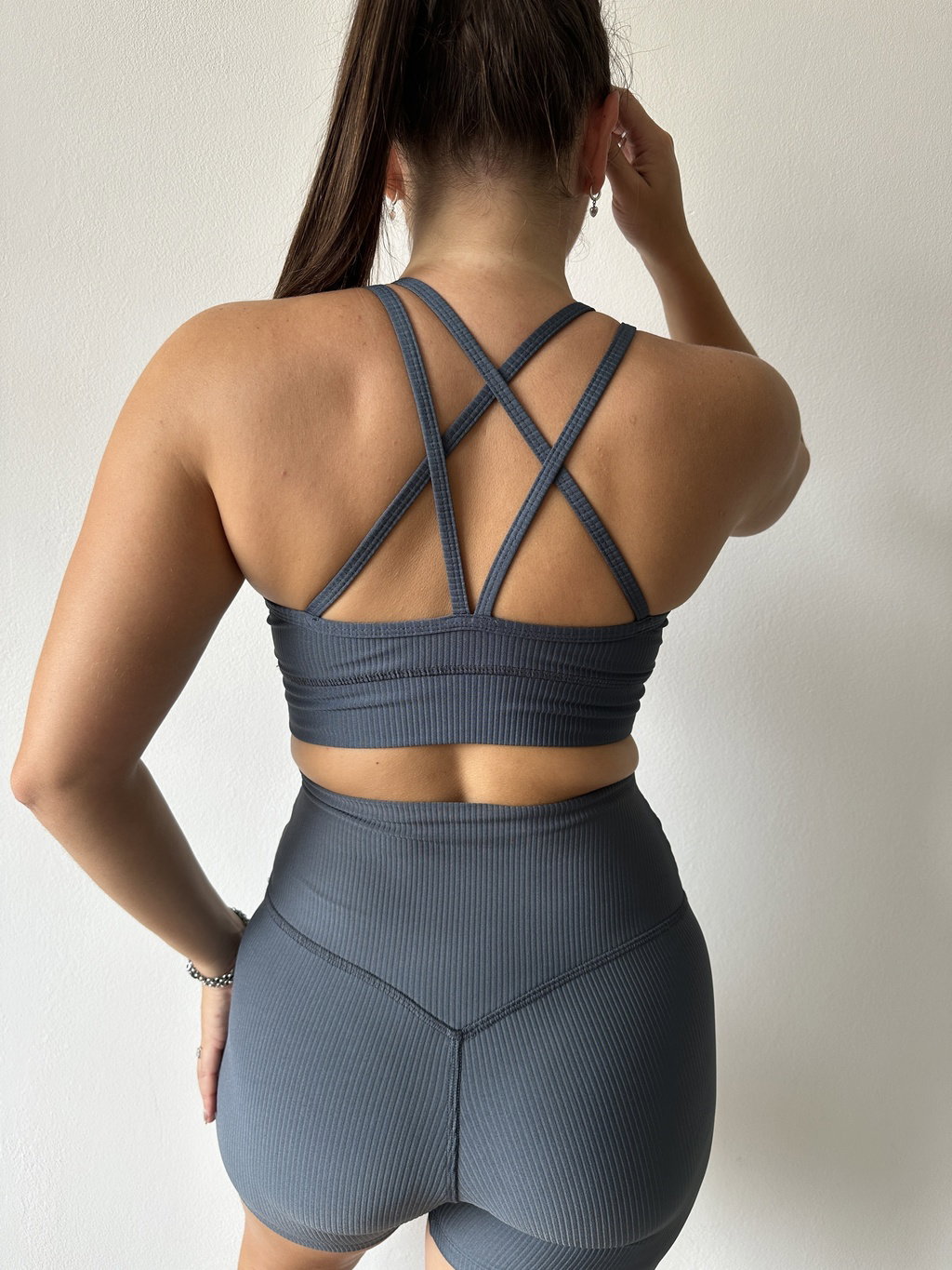Espalda de diseño con doble bretel cruzados.