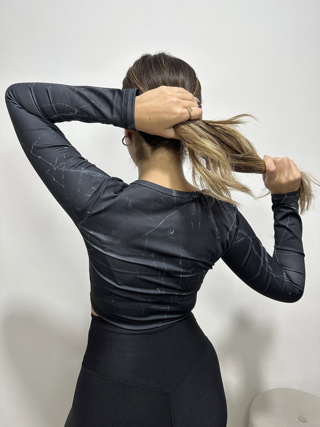 - Estilo remera corta. Cuello redondo. Puño envivado para pasar el pulgar.